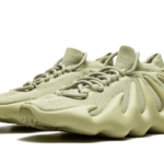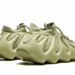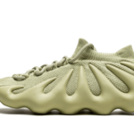 Buty Adidas Yeezy 450 Resin charakteryzują się unikalną kolorystyką, która łączy różne odcienie zieleni z subtelnymi akcentami brązu i szarości. Górna część cholewki ma zmatowioną, piankową fakturę w kolorze oliwkowym, co dodaje im nowoczesnego wyglądu. Podeszwa, wyróżniająca się organicznymi kształtami, przyjmuje ciemniejsze odcienie zieleni, co tworzy harmonijną całość. Całość utrzymana jest w minimalistycznym stylu, idealnym dla miłośników streetwearu i modnych sneakersów.