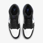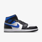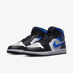 Buty Air Jordan 1 Mid Racer Blue wyróżniają się nowoczesną i sportową kolorystyką. Główne odcienie to intensywny niebieski, który dominuje na cholewce, podkreślający dynamiczny charakter modelu. Uzupełnieniem są czarne akcenty, które pojawiają się na swojkach, logo oraz wykończeniach. Biała podeszwa dodaje świeżości i kontrastu, wzbogacając ogólny wygląd butów. Całość tworzy harmonijną i stylową kompozycję, idealną zarówno do sportowych, jak i codziennych stylizacji.