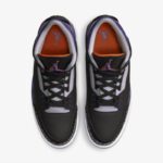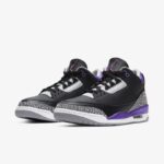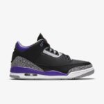Air Jordan 3 Black Court Purple to model, który wyróżnia się elegancką i nowoczesną kolorystyką. Główna część cholewki jest w intensywnym czarnym kolorze, co nadaje butom klasyczny i uniwersalny wygląd. Akcenty w kolorze purpurowym (Court Purple) dodają energii i charakteru, podkreślając detale, takie jak logo czy elementy wykończenia. Dodatkowo, szare akcenty wprowadzają balans i podkreślają sportowy styl butów. Całość tworzy harmonijną kompozycję, idealną dla miłośników streetwearu i kultury sneakerowej.