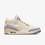 Buty Air Jordan 3 Muslin wyróżniają się stonowaną, minimalistyczną kolorystyką. Główna część cholewki jest utrzymana w odcieniach jasnego beżu, co nadaje im elegancki i uniwersalny charakter. Elementy czarne, takie jak logo Jumpman oraz detale w postaci paneli i sznurówek, dodają kontrastu i wyrazistości. Szare akcenty, umieszczone na podeszwie i wokół kołnierza, dopełniają całość, tworząc harmonijną kompozycję, która łączy klasykę z nowoczesnością. Idealne do codziennych stylizacji!