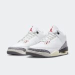 Air Jordan 3 White Cement Reimagined to odświeżona wersja kultowego modelu, który zadebiutował w 1988 roku. Buty łączą klasyczny design z nowoczesnymi akcentami, oferując ponadczasowy styl. Charakteryzują się białą skórzaną cholewką z szarymi i czarnymi detalami, w tym charakterystycznym wzorem elefanta na panelach. Wyróżniają je również czerwone akcenty na logo oraz podeszwie. Komfort zapewnia poduszka powietrzna w podeszwie, co sprawia, że są idealne zarówno do noszenia na co dzień, jak i na boisku. To must-have dla każdego fana sneakersów i kultury streetwear.