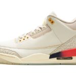Buty Air Jordan 3 x J Balvin Medellin Sunset wyróżniają się żywą i energetyczną kolorystyką, inspirowaną zachodem słońca w Medellín. Główne odcienie to intensywne pomarańcze i różowe, które przechodzą w złote akcenty, tworząc efekt gradientu. Dodatkowo, detale w kolorze zielonym i niebieskim dodają orzeźwiającego kontrastu. Całość uzupełniają charakterystyczne wzory i symbole, co sprawia, że buty są nie tylko stylowe, ale także pełne emocji i ekspresji.