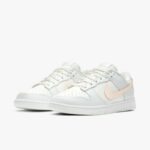 Nike Dunk Low Barely Green to model, który zachwyca subtelną kolorystyką. Cholewka buta prezentuje delikatny odcień zieleni, przypominający świeże liście, który harmonijnie kontrastuje z białymi elementami, takimi jak podeszwa i sznurówki. Dodatkowe akcenty w odcieniach szarości dodają elegancji i nowoczesnego charakteru. Całość emanuje świeżością i lekkością, idealnie wpisując się w wiosenne tendencje. To świetny wybór dla tych, którzy cenią sobie styl oraz komfort.