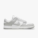 Buty Nike Dunk Low Grey Fog charakteryzują się minimalistyczną kolorystyką. Główna cholewka jest w odcieniach szarości, z subtelnymi akcentami bieli. Dodatkowe detale, takie jak logo, są w jasniejszych tonach, co nadaje całości elegancki i nowoczesny wygląd. To idealny wybór dla miłośników stonowanych kolorów i uniwersalnych stylizacji.