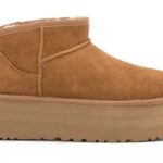 UGG Ultra Mini Platform Boot w odcieniu Chestnut charakteryzuje się ciepłym, brązowym kolorem, który przypomina naturalny odcień orzecha. Ten klasyczny kolor doskonale komponuje się z różnorodnymi stylizacjami, zarówno casualowymi, jak i eleganckimi. Skórzana cholewka w kolorze Chestnut nadaje butom luksusowy i stylowy wygląd, a jednocześnie jest praktyczna i odporna na warunki atmosferyczne. Platformowa podeszwa dodaje odrobiny nowoczesności, a jednocześnie zapewnia komfort noszenia.