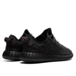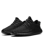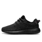 Buty Yeezy Boost 350v2 Pirate Black charakteryzują się stonowaną, monochromatyczną kolorystyką. Głównym kolorem jest głęboka czerń, która pokrywa całe upper buta oraz podeszwę. W odróżnieniu od jednolitej czerni, wpleciona jest subtelna grafitowa nitka, która nadaje teksturę i głębię. Elementy białe, takie jak logo na języku oraz jaśniejsza podeszwa, harmonijnie kontrastują z ciemnym tłem, tworząc elegancki i nowoczesny wygląd. Całość sprawia, że buty są uniwersalne i łatwe do zestawienia z różnorodnymi stylizacjami.