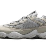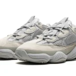 Buty Adidas Yeezy 500 Stone Salt charakteryzują się stonowaną kolorystyką w odcieniach szarości, beżu i bieli. Materiały o różnej teksturze nadają im nowoczesny wygląd, a subtelne detale podkreślają unikalny design. Całość tworzy elegancki, minimalistyczny styl idealny na co dzień.