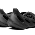 Adidas Yeezy Foam RNR Onyx to model obuwia charakteryzujący się elegancką, monochromatyczną kolorystyką. Jego głównym odcieniem jest intensywna czerń, która nadaje butom nowoczesny i minimalistyczny wygląd. Powierzchnia wykonana z lekkiego materiału ma subtelne, matowe wykończenie, które podkreśla fakturę. Dodatkowo, w niektórych partiach buta zauważalne są delikatne odcienie szarości, które dodają głębi i wymiaru. Ogólnie, kolorystyka „Onyx” emanuje stylem i uniwersalnością, sprawiając, że doskonale pasuje do różnych stylizacji.