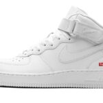 Air Force 1 Mid Supreme White to wyjątkowe sneakersy, które łączą klasyczny design z modowymi akcentami. Wykonane z wysokiej jakości białej skóry, zapewniają trwałość i wygodę noszenia. Charakteryzują się średniej wysokości cholewką, co dodaje im charakterystycznego stylu, a także elementami Supreme, które nadają im unikalności. Gumowa podeszwa gwarantuje doskonałą przyczepność, a klasyczne detale, takie jak logo Nike, podkreślają ich sportowy charakter. Idealne zarówno do codziennych stylizacji, jak i na wyjątkowe okazje.