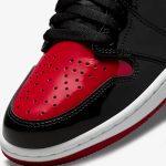 Air Jordan 1 High Patent Bred to ikoniczny model, który łączy w sobie klasyczny design z nowoczesnym wykończeniem. Buty te wyróżniają się elegancką, lakierowaną skórą w intensywnym czarnym kolorze, która podkreśla ich ekskluzywny charakter. Czerwone akcenty na detalach, takich jak logo i obrzeża, nawiązują do oryginalnej kolorystyki „Bred”, dodając energii i dynamiki. Całość dopełnia biała podeszwa, która zapewnia kontrast i lekkość. Ten model z pewnością przyciągnie wzrok i wpisuje się w trendy streetwearowe.