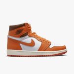 Air Jordan 1 High Starfish to model, który wyróżnia się na tle innych dzięki swojej unikalnej kolorystyce. Cholewka butów łączy klasyczną biel z intensywnym pomarańczowym akcentem w odcieniu „Starfish”, który zdobi boczne panele oraz logo Nike. Dodatkowo, wstawki czerni pojawiają się na obszarze wokół kostki oraz w podeszwie, co nadaje całości większej głębi. Ta harmonijna kombinacja kolorów sprawia, że model jest zarówno stylowy, jak i wszechstronny, doskonale nadając się do różnych stylizacji.
