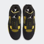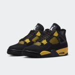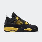 Air Jordan 4 Retro Thunder to sportowe buty w dynamicznej kolorystyce, która przyciąga wzrok. Główna baza buta jest w intensywnym czarnym kolorze, co nadaje mu elegancki i uniwersalny charakter. Akcenty w jaskrawym żółtym odcieniu dodają energii i kontrastu, szczególnie w detalach, takich jak logo i elementy wykończenia. Dzięki połączeniu tych kolorów, model „Thunder” wyróżnia się na tle innych, łącząc sportowy styl z modnym wyglądem na codzień.