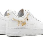 Buty Air Force 1 Jewels charakteryzują się klasycznym, białym cholewką, która nadaje im elegancki wygląd. Akcenty kolorystyczne w postaci metalicznych detali, takich jak logo Swoosh, dodają im nowoczesnego charakteru. Całość utrzymana jest w stonowanej palecie, co sprawia, że są wszechstronne i pasują do różnych stylizacji.