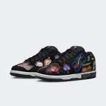 Nike Dunk Low SB Neckface to wyjątkowe buty, które wyróżniają się nietypową kolorystyką. Główna cholewka jest w odcieniach czerni, co nadaje im mrocznego charakteru. Kontrastujące białe detale, dodają świeżości. Na bokach znajdują się unikalne, graficzne elementy inspirowane sztuką uliczną, z kolorowymi akcentami w odcieniach zieleni, czerwieni i fioletu. Całość tworzy dynamiczny, artystyczny look, idealny dla miłośników streetwearu i niebanalnych dodatków.