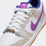 Buty Nike Dunk Low SB x Rayssa Leal wyróżniają się żywą i dynamiczną kolorystyką. Cholewka jest w odcieniach pastelowego różu i bieli, co nadaje im świeżego i nowoczesnego wyglądu. Akcenty w intensywnym różu i żółtym kolorze dodają energii i podkreślają sportowy charakter modelu. Całość dopełniają detale, które nadają butom elegancji i kontrastu. Idealne dla osób szukających stylowego, a zarazem kolorowego obuwia!
