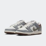 Nike Dunk Low SB Yuto Horigome to model, który wyróżnia się unikalną kolorystyką. Wierzch buta jest w odcieniach ciemnego granatu i bieli, co nadaje mu elegancki i nowoczesny wygląd. Elementy cholewki zdobione są subtelnymi akcentami, które podkreślają sportowy charakter buta. Dodatkowo, zastosowanie wysokiej jakości materiałów zapewnia nie tylko estetykę, ale i komfort podczas noszenia. Całość tworzy harmonijną kompozycję, idealną dla miłośników streetwearu oraz aktywnego stylu życia.