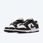 Buty Nike Dunk Low World Champs charakteryzują się atrakcyjną kolorystyką, która łączy w sobie klasyczne odcienie oraz nowoczesne akcenty. Główna cholewka jest w intensywnej czerni, co nadaje im świeżego i eleganckiego wyglądu. Kontrastujące detale w kolorze białym i złotym na panelach oraz logo nadają im sportowego charakteru. Całość uzupełnia subtelna, czarna podeszwa, co dopełnia stylowy design. Te sneakersy idealnie wpisują się w miejskie trendy i są świetnym dopełnieniem każdej stylizacji.